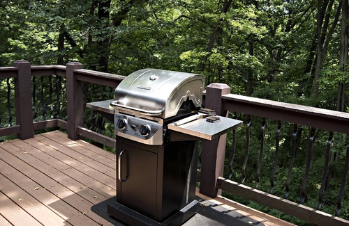 Redtail Retreat: This lovely 2500 square foot three bedroom home, tucked into the trees of The Galena Territory, is a great place to retreat. The front door opens into a conversational gathering room with plenty of seating. Adjacent to the gathering room is the spacious kitchen area which is separated from the 8 person dining area by a counter with stools that enables the cooks to converse with those at the table. The screened porch is located just off the kitchen as well as the outside deck which is equipped with a gas BBQ grill. The main floor has the master bedroom with attached master bath. This bedroom has a king size bed with a flat screen smart TV, the adjoining bath has a shower stall, double sinks and Tub. Downstairs, in the lower level, there are two bedrooms and a Gathering/Media Room. The first bedroom has a Queen Size bed with an attached bathroom. The second bedroom has a King Size bed with an attached bath that is shared with the downstairs gathering/media room. This downstairs gathering/media room has a sectional couch with a lounge chair, large flat screen TV, gas fireplace that turns on with a flip of a switch and a wet bar. Outside on the lower level is the deck with a hot tub that accommodates 6 people.