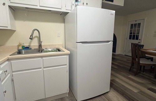 Inside the home: washer and dryer for your convinence, full kitchen with full size refrigerator, stove, coffee pot. Large TV in the living room, available wifi. Tub/shower. Hangers in the closet.