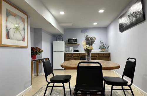 Cozy 2-bedroom basement suite with 2 full-size beds, living room, TV with Netflix, and free internet. Kitchen includes a fridge and coffee maker (no oven). Smoke-free and pet-free for a clean, comfortable stay. Located just minutes from downtown Saint Charles, Fox River trails, shopping at Geneva Commons, and more. Enjoy the peaceful setting with easy access to local attractions. Perfect for families or work retreats!