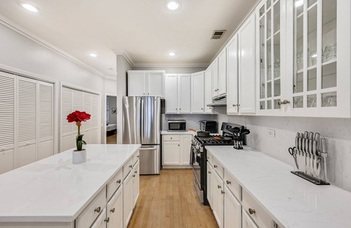 • Fully stocked kitchen includes coffee machine, new appliances, and everything to have a home-cooked gourmet meal