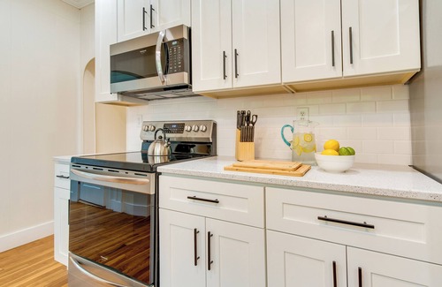 KITCHEN: Stainless steel appliances, dishwasher, tea kettle, toaster, dual Keurig/drip coffee maker, toaster, dishware/flatware, knife set, cooking basics/spices