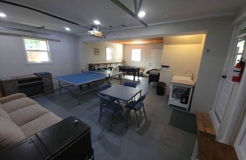 This little neighborhood is located near the start of a scenic loop road on the southwestern tail of Lake Bloomington, and the house is on the north shore of Reese Lake. The fenced in yard has a gas grill, covered outdoor dining area, and a fire pit. The attached garage has been transformed into a game room. The game room has air hockey, foosball, ping pong table, electronic keyboard, puzzles, board and table games, and a smart TV.