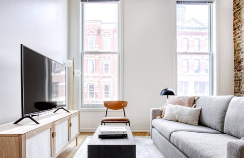 This furnished apartment is situated in Wicker Park, one of Chicago’s trendiest neighborhoods. The area, located in just northwest of downtown Chicago, is known for offering an abundance of dining and entertainment experiences. It is an element that renders Wicker Park a hotspot for business professionals and young families. The Flat Iron Arts building is perfect for creatives in search of inspiration. The Loop and River North are only 10 to 15 minutes away by train.