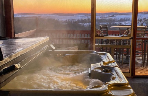 Brand new. Nothing like it. Five bedrooms (including large bunk room that sleeps 7) FIVE BATHS! Stay at the Brixen Ivy Ranch and enjoy all of our amenities as well as Galena territory owners club. Great floor plan with large great room, amazing views of rolling hills. Giant game room with pool table, table tennis, pop a shot, bunk room for 6, in addition to four more large bedrooms. Fire pit, hike the Shark trail or others on the 300 acre ranch. Access to ball field, llamas, peacocks. Great family escape with lots of fresh air and room to "social distance" :). Large HOTTUB on Large patio deck and screened in porch with outdoor television.