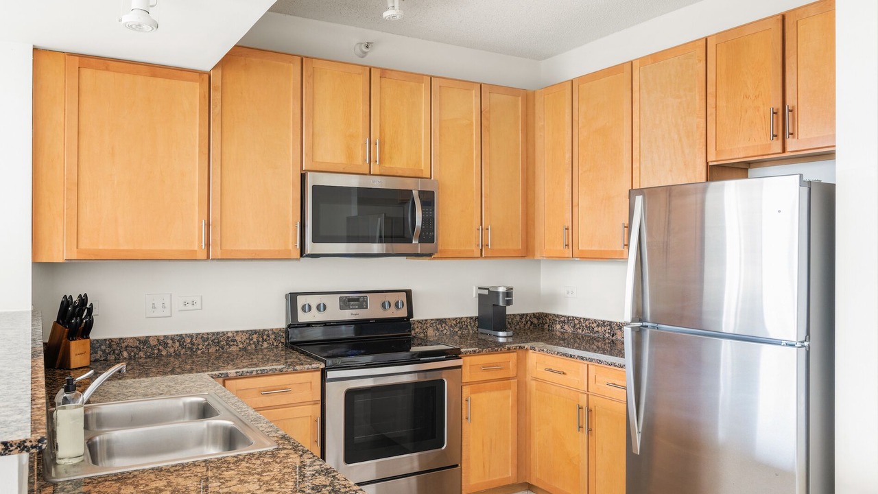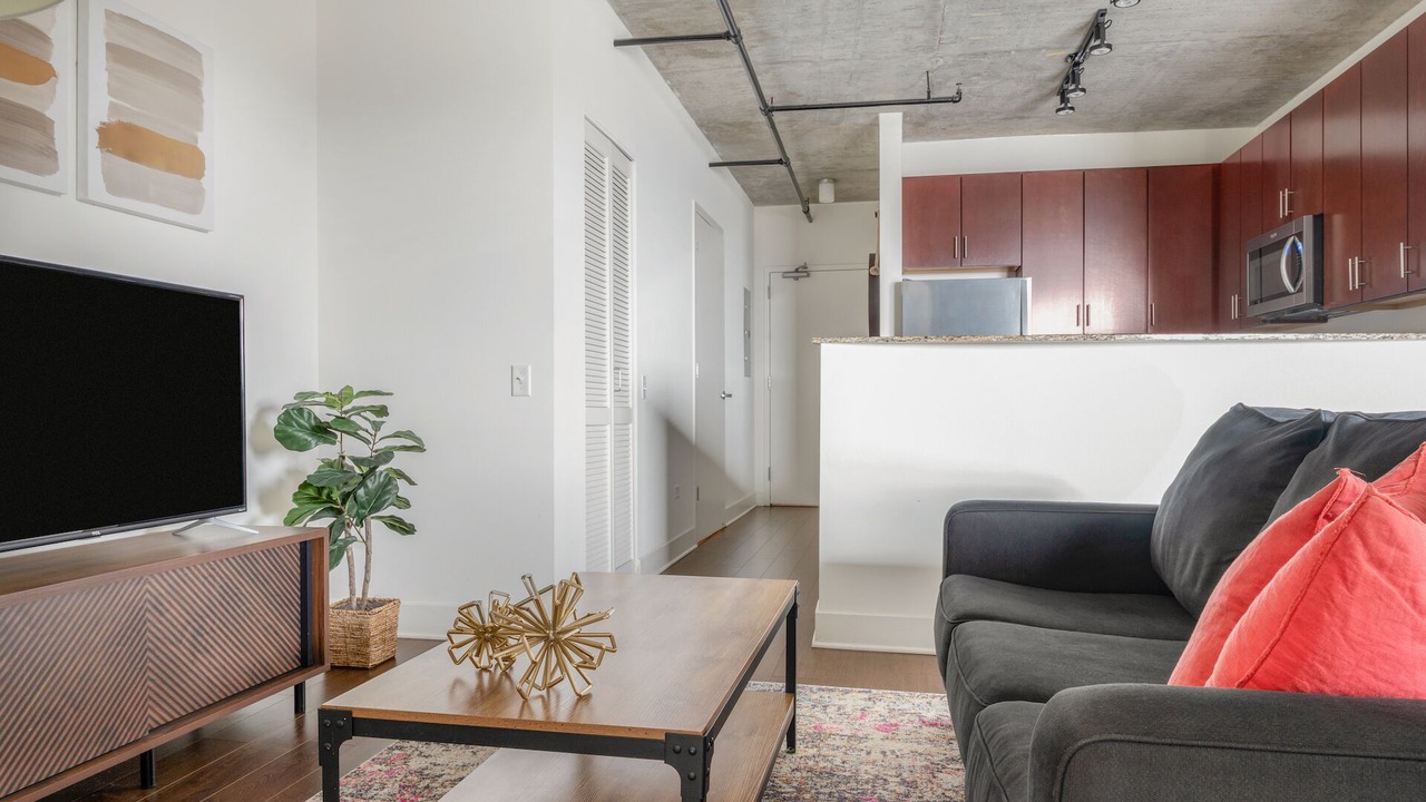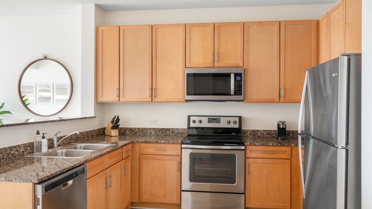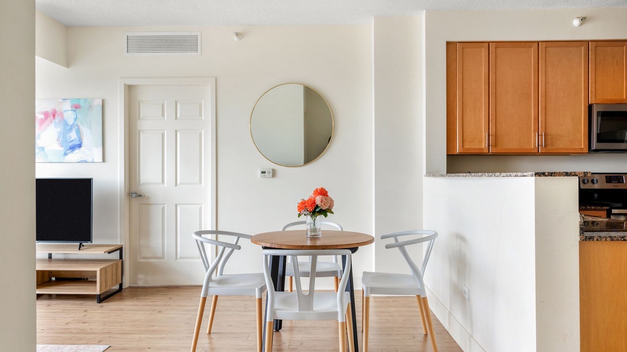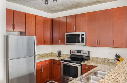 Each apartment provides a kitchen with a refrigerator, an oven, a stovetop, and a microwave. Comforts include a memory foam bed and premium bedding, and guests will also find conveniences like a washer/dryer and a dining area.
