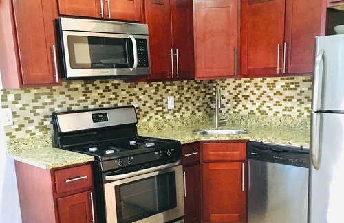 This space was updated recently and features modern finishes. There is a fully stocked kitchen with basic cooking items.