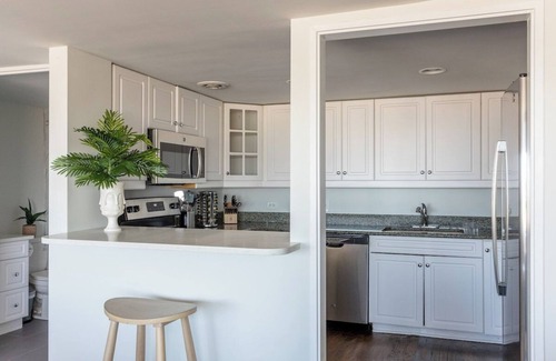 Located in a full-service building with elevator access and just steps from Michigan Avenue, the penthouse combo is comprised of 2 side-by-side apartments that have been professionally designed, sleeping up to 20 people total and is perfectly situated for groups, families, and those traveling for work. In each unit, everything flows around the spacious and open living rooms and kitchen which have some of the most breathtaking views of all of Chicago and the Lake, and features high-end cooking appliances and designer level finishes, which creates a unique environment for entertaining and gathering with your group.