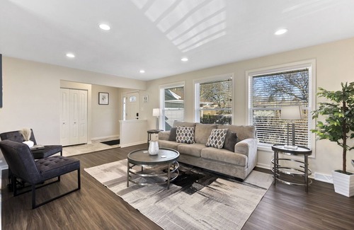 Beautiful 2200 sq ft home, located in the south suburbs, near Tinley Park and just minutes away from I-57 and I-80! This home features 5 bedrooms and 2 bathrooms. One bedroom has a KING bed, 3 bedrooms have a QUEEN bed, and 1 room has 2 TWIN beds. The living room has space for the 1 air mattress on site (Total of 7 beds). Plenty of kitchen utensils, pots/pans, appliances, anything you could possibly want in a kitchen! Children friendly & lots of technology!