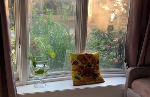 Welcome to The Gallery. Located in Wood Dale, this delightful house offers 2 bedrooms with a king and queen bed, 2 bathrooms with showers and one with a tub, and a cozy living room with a sofa bed. Guests can enjoy amenities like heating, WiFi, and a washing machine during their stay. Experience a charming retreat in Wood Dale at our lovely house. This house feature and honors different painters from all over the world, such as; Frida Khalo, Diego Rivera, Monet, Van Gogh, and many more. Walking distance to a Forest Preserve and a Golf Course