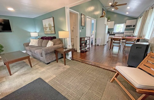Relax in the peaceful lakeside Pelican House (House #3) located right on the shores of Grass Lake. This private 1 bedroom home has breathtaking sunrise views over the lake. Recently updated kitchen and bath, vaulted ceiling, refinished hardwood floors, deck, 550 sqft, wifi, TV and more.