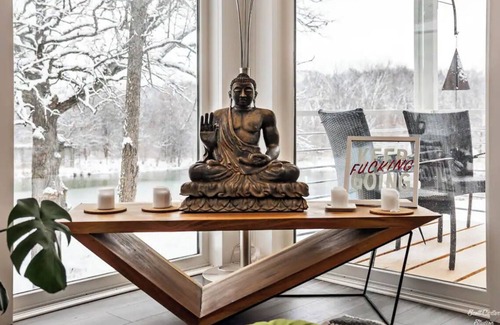 The Pond House, a vintage glass cabin filled with art, water views & eclectic vibes privately perched on the sacred grounds of Hackmatack Retreat Center. Native prairie, a winding slow river, two ponds, 200+ year old oaks & big sky- Countless places to curl up, gathering, focus-- nooks and crannies indoors and out, we offer “time out for time in” amidst this noisy world. Minutes from 2 small towns, all amenities, we're all about peace & ease-- let us custom curate your experience !